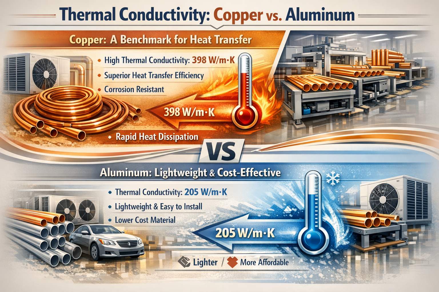 I saol na malartóirí temara, córatá aerchóirithe, aonaid cuisniúcháin, agus iarratais bhainistíochta teirmeach eile, tá rogha na n-ábhar do na feadáin a éascaíonn aistriú teasa ríthábhachtach. Copar agus alúmanam Tá dhá cheann de na miotail is coitianta a úsáidtear sna córais seo, go háirithe maidir le heití agus feadáin a fheabhsaíonn éifeachtúlacht malartaithe teasa. Mar sin féin, maidir le feidhmíocht, ardaítear an cheist: Cé acu is fearr le haghaidh aistriú teasa - Feadáin Copar Eite nó Feadáin Alúmanam ?