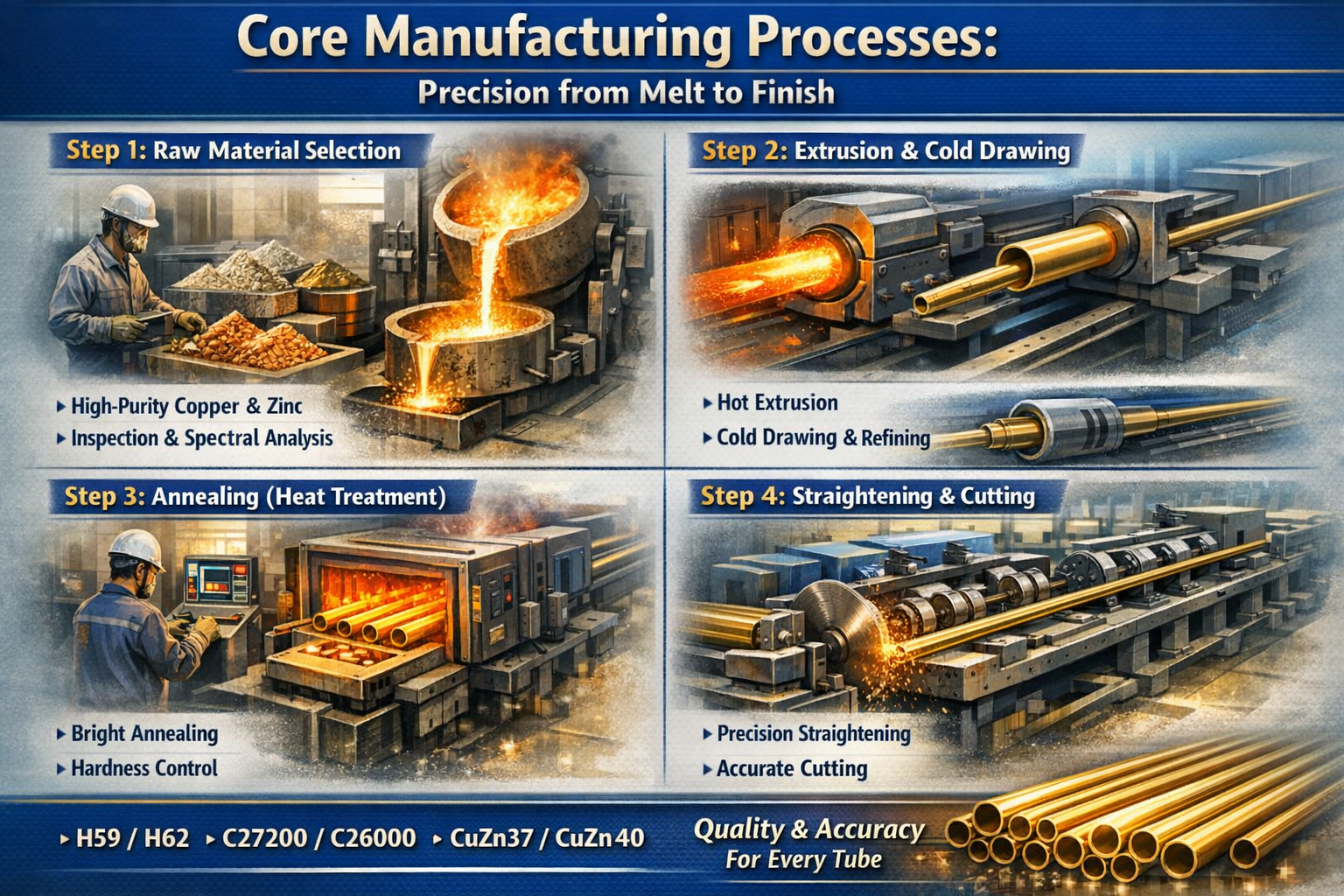 Is í an trédhearcacht bunús na muiníne i gcomhpháirtíochtaí B2B. Ní feadáin “déanamh” amháin a dhéanann monarcha feadáin phráis ghairmiúil; leanann sé seicheamh dian, faoi rialú eolaíoch chun a chinntiú go gcomhlíonann gach milliméadar den táirge caighdeáin idirnáisiúnta.
