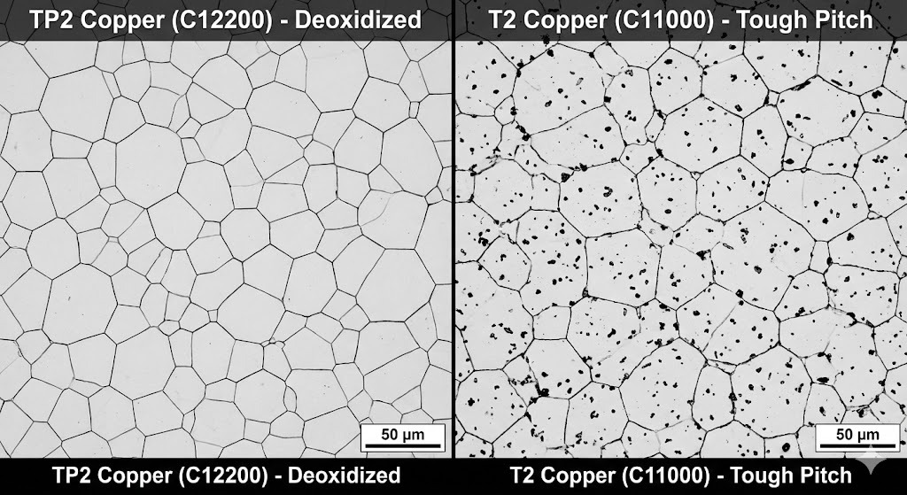 A: Tá rian ocsaigine i gcopar T2, rud is cúis le “brith hidrigine” le linn táthú, rud a fhágann go mbíonn scoilteanna ann. Tá TP2 díocsaídithe, rud a chiallaíonn gur féidir é a phrásáil agus a tháthú arís agus arís eile gan sláine struchtúrach a chailliúint.