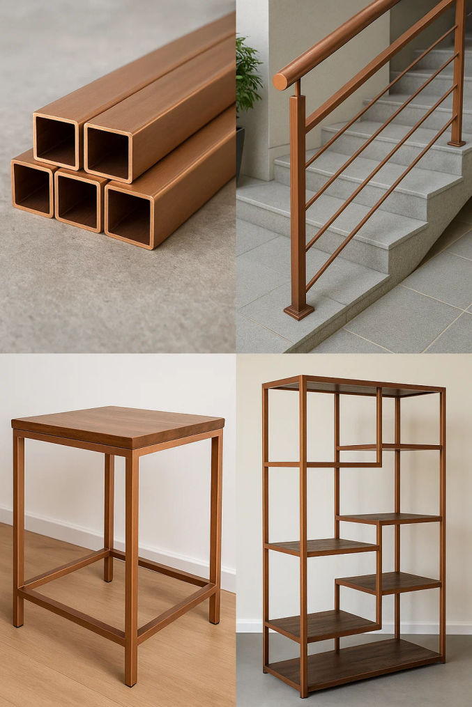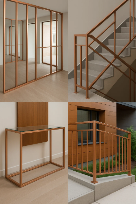 Tá feadáin cearnacha copair thar a bheith ildánach agus is féidir é a úsáid i réimse na n-iarratas ailtireachta. Ó eilimintí tacaíochta struchtúracha go gnéithe maisiúcháin, cuireann feadáin cearnacha copair raon leathan féidearthachtaí ar fáil. Mar shampla, is minic a úsáidtear iad mar ábhar frámaithe i ndearaí taobh istigh agus taobh amuigh araon. Tá a gcruth caol, geoiméadrach oiriúnach do línte láidre dána a chruthú a chuidíonn le spás a shainiú. Ina theannta sin, tá feadáin cearnacha copair á n-úsáid chun ráillí iontacha, fálú, agus fiú píosaí troscáin saincheaptha a chruthú.