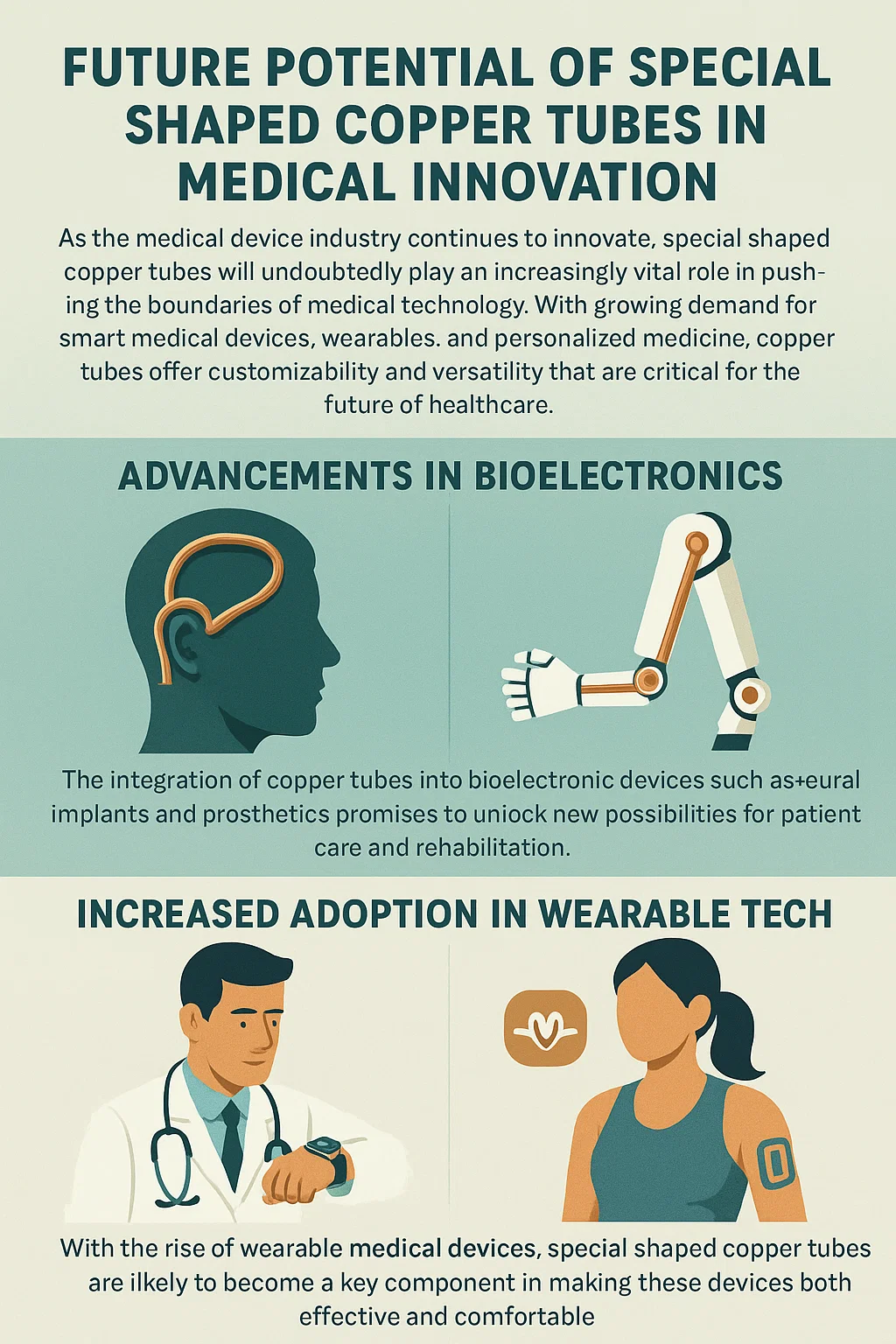 Glacadh Méadaithe i dTeicneolaíocht Inchaite : Le méadú ar fheistí leighis inchaite, feadáin copair múnlaithe speisialta is dócha go mbeidh siad ina bpríomhchuid chun na gléasanna seo a dhéanamh éifeachtach agus compordach.